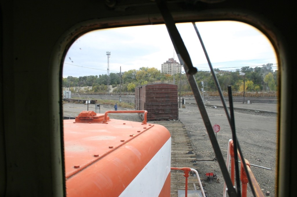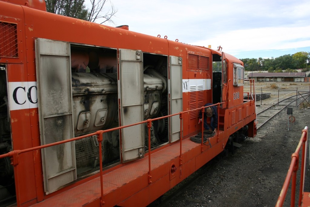 On Saturday, October 23, Dwight Maxey, Dan Reichenbach, Colin Mellin and Paul Brown got the work done at the Museum. First up was to get Engines 103 & 104 started. The crew successfully got 104 started on its own, but Engine 103 had to be jump-started due to battery issues. Even after several hours of running, the batteries on Engine 103 are not taking a charge, so we will have to continue to investigate the problem. We used Engine 104 to shuffle some equipment around, and get ready for upcoming events. While the engines were warming up, the crew had some time to add some journal oil to our Mo-Pac caboose, as this car still sports friction bearings.