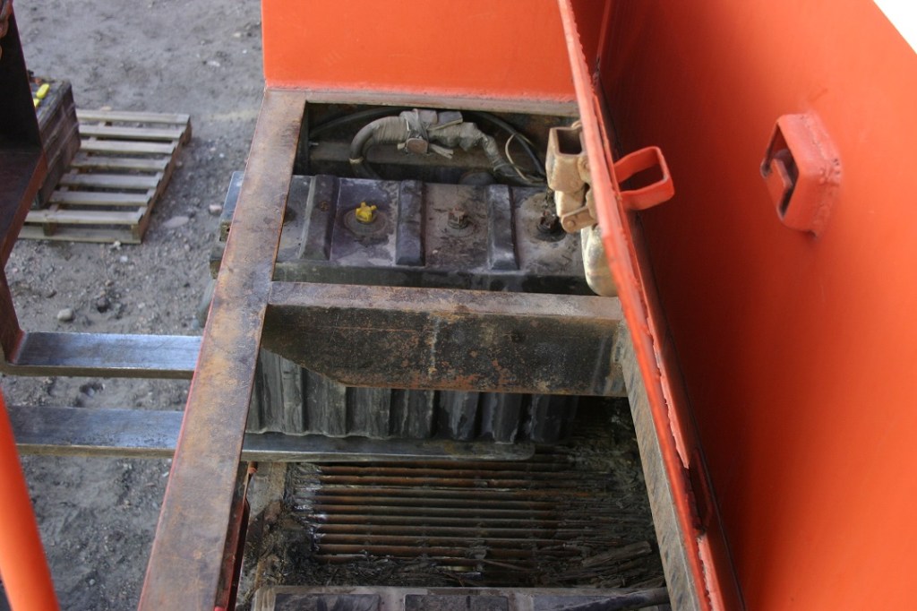 On Saturday, January 8, a small crew consisting of Dwight Maxey, Colin Mellin, Tyler Seeley, Tanner Seeley and Paul Brown did the work to remove batteries from the engineer’s side of locomotive 103. After lifting the batteries out, we found more of the floor than we expected, but it was very rusty. We worked to clean out a bunch of rust, and then determined what we should do about the remaining bottom of the battery compartment. The crew also added an external drain line, and cleaned up the cab of the locomotive, as the recent winds had deposited a thick layer of dust inside.