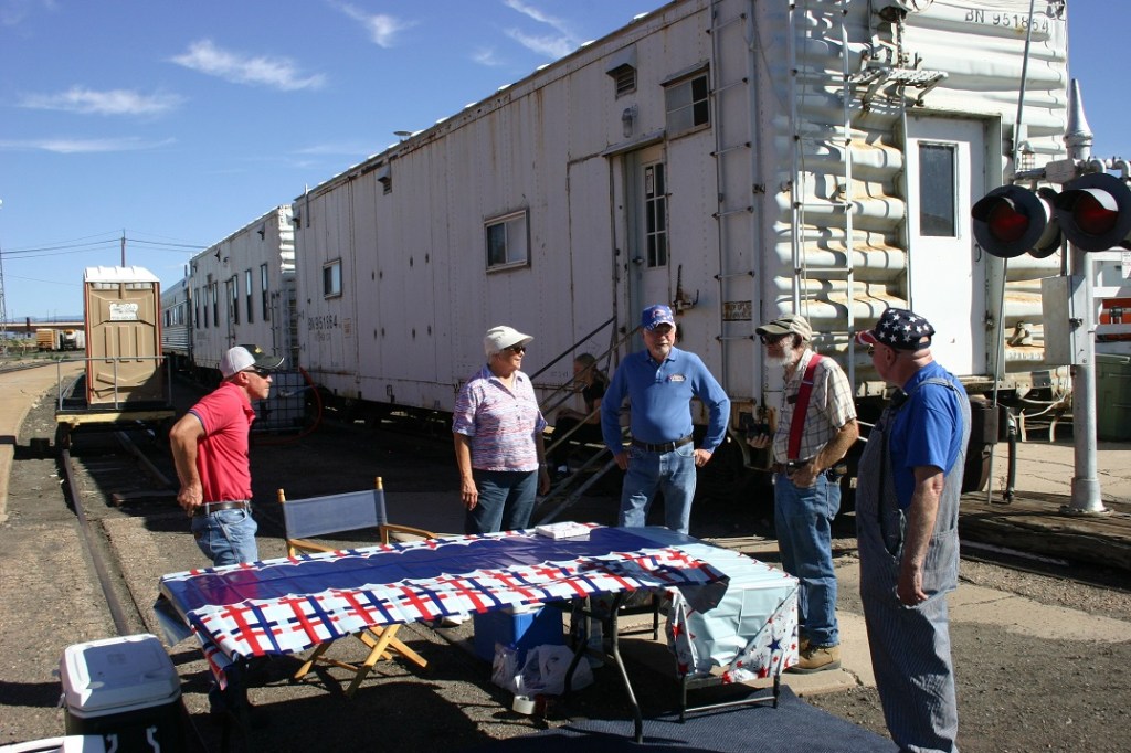 On Monday, July 4, the volunteers came out to support the 4th of July train ride event. Ron Roach, Dwight Maxey, Colin Mellin, Kendall Crouch, Reid Adams, Tyler Seeley, Tanner Seeley and Paul Brown were the crew and ticket and platform agents. Due to some intense advertising spearheaded by Reid Adams, we had a very good turn out of customers, with folks arriving throughout the event time of 9am to 1pm. It seemed to the crew that we had a lot of new visitors also! This event also included a free cup of ice cream and a bottle of water for all who rode and wanted one.