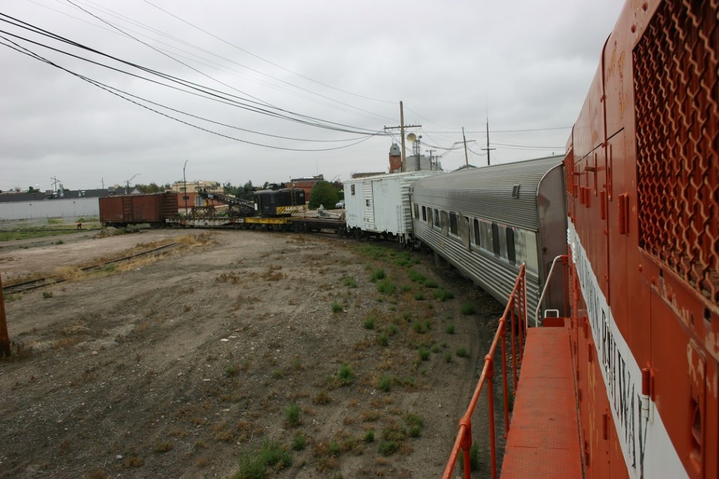 On Saturday, September 10, volunteers Colin Mellin, Dwight Maxey, John McDowell, Reid Adams, and Paul Brown enjoyed a respite from the heat wave, with some cloudy, cool weather, and stayed busy switching around many cars in our shop yard. After opening up a dead end spur track – that used to be unsecured because it was outside our fence – it was time to stuff it full with some equipment that doesn’t get regularly used and ends up being in the way. We spotted one old passenger car, the 44 tonner, and three odd freight cars on the spur, which opened some space for other projects. We were also able to bring the car we use for our Halloween event into the yard, so work could be done to improve it.