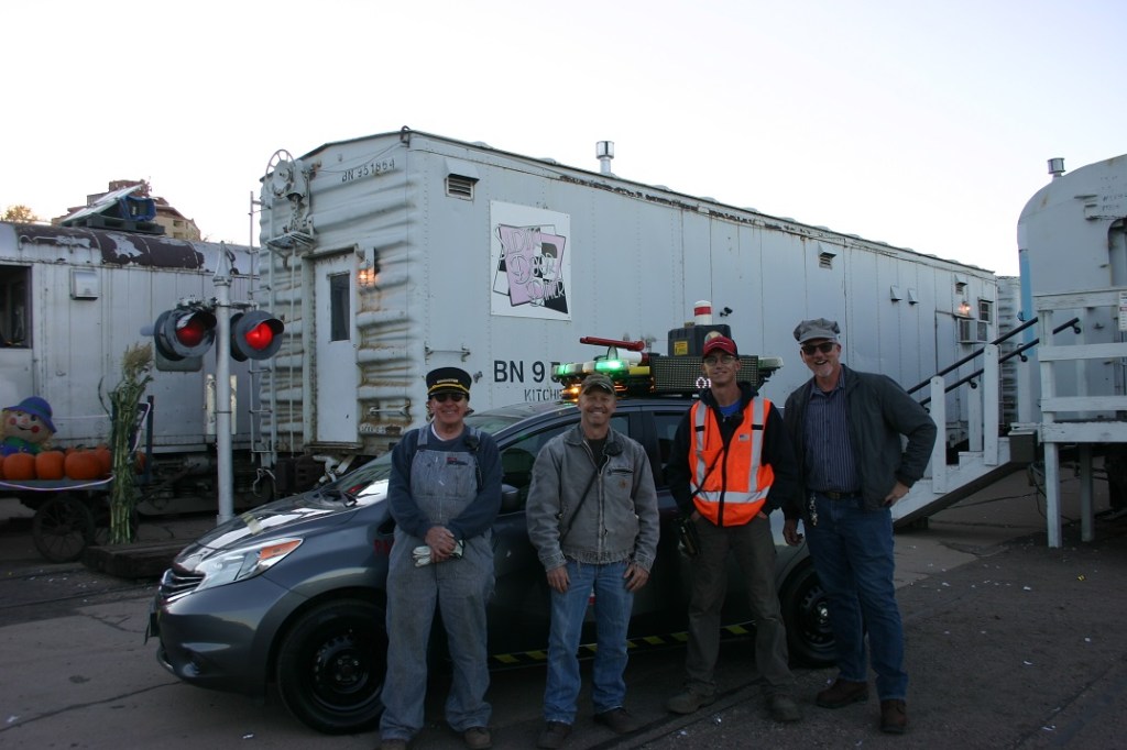 On Saturday, October 29, the Pueblo Railway Museum rolled out their annual spook train. Many thanks go out to John McDowell, Ron Roach, Maureen King, Jerry Dandurand, Dee Applegate, Dwight Maxey, Colin Mellin, Justin Cesar, Reid Adams and Paul Brown, for doing all the work it takes to pull together an event like ours. John McDowell did a great job putting together our Haunted Railcar once again this year. It was pretty good, because there were several people seen running out of there screaming! John and Dwight worked earlier in the week to get decorations and lighting completed, so the displays would look good. As always, the night of the event was very busy. We had 70 caboose riders, and a handful of locomotive cab riders that kept things moving, and before you know, it the evening is over. We even had a Ghostbusters tribute car and actor on the site!