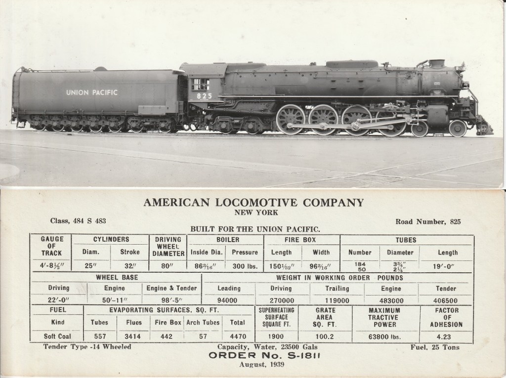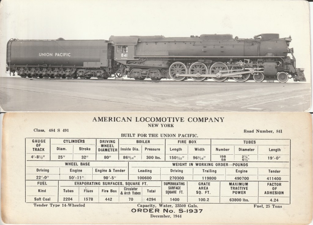 Four of these engines survive today. #814 (FEF-1) and #833 (FEF-2) are preserved as static displays in Iowa and Utah respectively. #844 (FEF-3) is operational, running excursion service in Wyoming, with #838 (also FEF-3) serving as “spare parts” for #844. The three engineering cards below are from The James N. Lhotak Digital Exhibition, recently donated to us at the Pueblo Railway Foundation. We are in the process of posting photos of this collection on our Facebook and Instagram pages, as well as here on our blog. We invite you to follow us on this journey through railroad history.