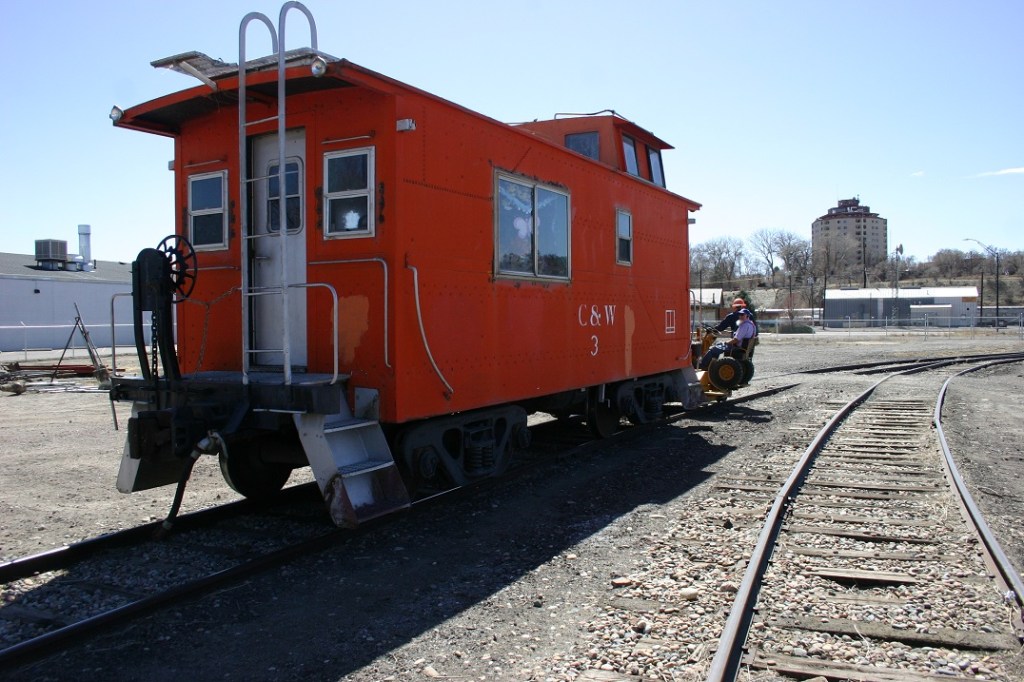 After lunch we fired up Engine 104 and switched the cabooses around to get things ready for next week’s Easter event. The C&W Caboose #3 is set up as the bunny hutch, and we placed it over by the collection where we load. The weekday crew will get things ready for the event.