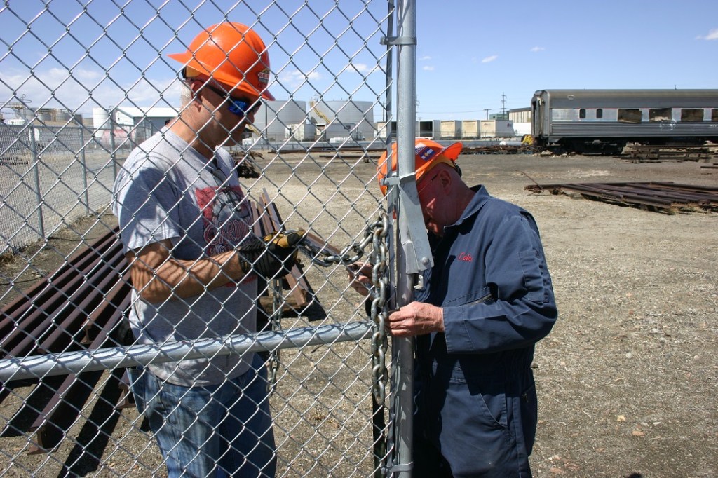 We broke for lunch around noon, and then started back to work checking the locomotive crankcases for any accumulated coolant. We do this twice per year to see if there is any major water leakage, and to spot other possible problems. After this work was completed, we headed out to install posts that we can use to chain open the gates in our perimeter fence. This keeps the gates from moving in any wind, while we are moving the train or other vehicles through.