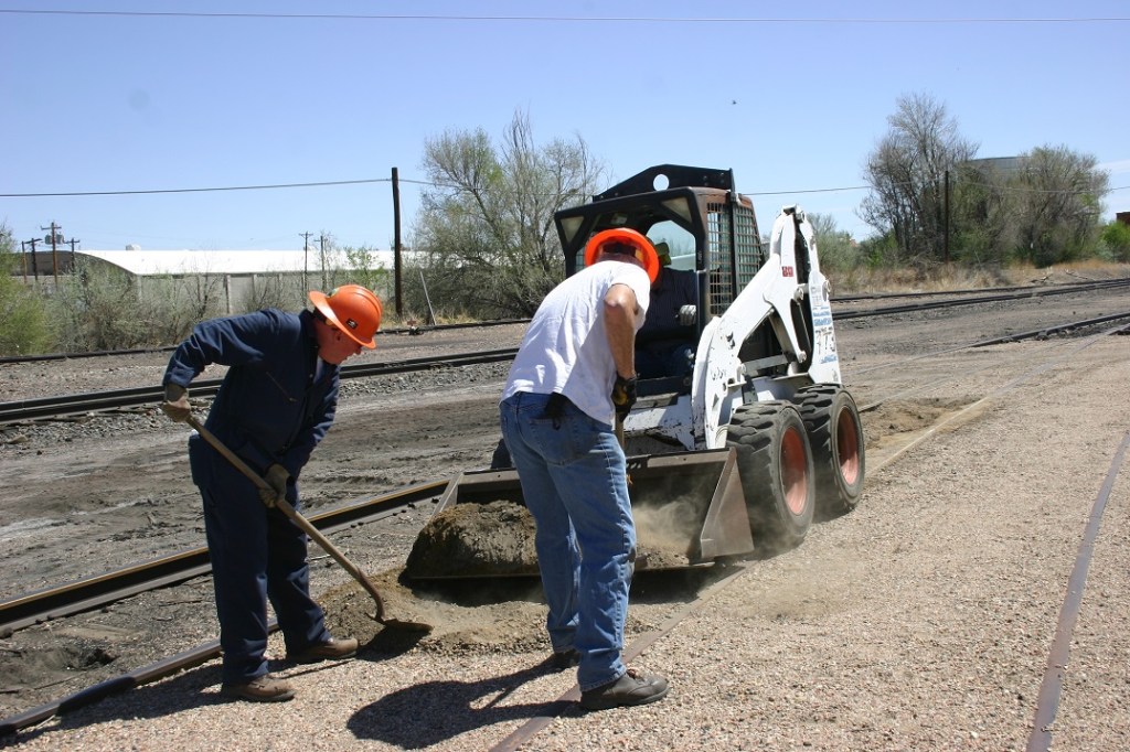 On Saturday, May 6, Dwight Maxey, Colin Mellin, Kendall Crouch and Paul Brown got dirty! The group worked to clean out dirt and expose the ties on our main running track, to see what kind of damage we have and how many ties will need replaced in the near future. After cleaning out about a 25 foot section of the track, we found three ties that will need replaced. One of those ties had completely rotted away!