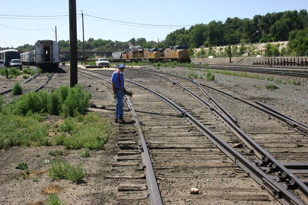 On Saturday, July 22, Dwight Maxey and Paul Brown braved a warm and humid day to keep some projects advancing at the Museum. Despite the small crew size, we were able to get a number of things done. First thing in the morning, we headed out to identify ties we will be replacing, since we didn’t have enough volunteers to actually replace ties today. While marking the ties, we were able to pull a good number of weeds, and watch a few trains roll by on both the BNSF and UP! Before heading to lunch, we emptied all the trash cans in the platform area and with all the rain soaking the accumulated trash it made for an aromatic experience!!