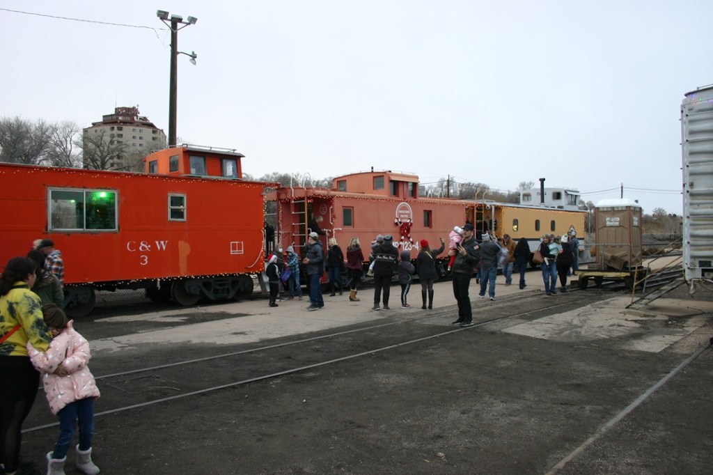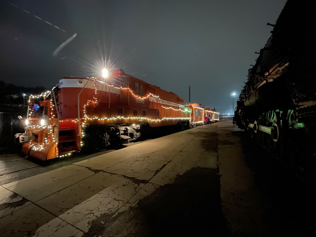 On Sunday, December 24th, the Museum ran it’s annual Christmas Eve Pueblo Express, which is also the last event for the year. We may have set a record for attendance with this one as we had close to 200 total visitors. Thanks to volunteers Ron Roach, Dave Dandurand, Diana Garrison, Teia Brown, Demitris Brown, Michael Brown, Jackie Anzlovar, Dwight Maxey, Polly Cotton, Dannis Hudson and Paul Brown, our visitors were all seen having a good time and enjoying the Christmas lights with snow flurries falling! Our train crew was kept hopping with this many visitors, and some radio issues, which we solved the old fashion way with lantern signals. I’m sure the crew in the diner never got to catch their breath as folks streamed in to get some hot chocolate! All in all, it was a fun evening and the culmination of a very good year at the Pueblo Railway Museum.