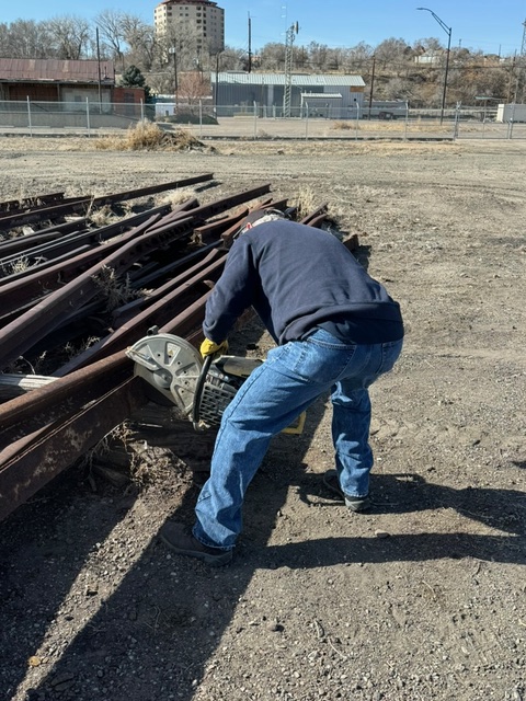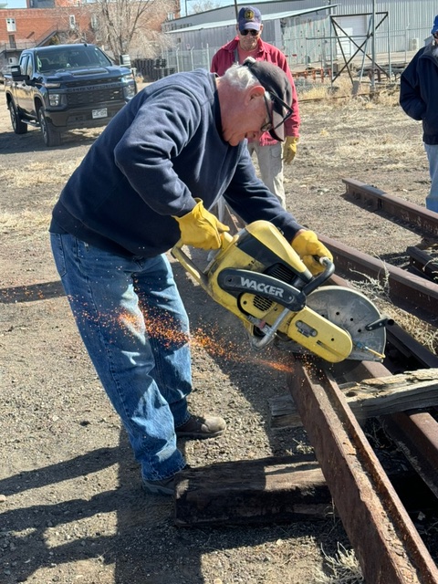 On Saturday, February 24, volunteers Dwight Maxey, Colin Mellin, Kendall Crouch, Bruce Davis, Chris Pollard, Dannis Hudson and Paul Brown got busy to finish work on a new driveway/crossing across our shop lead tracks. We had to cut some sections of rail to act as flange-ways, and place recycled crushed concrete for the drive surface. While part of the group was finishing up this work, Bruce and Kendall decided to clean up some weeds, which is a great help as this is a major issue on the Museum grounds, and all of the volunteers got in on the work before breaking for lunch.