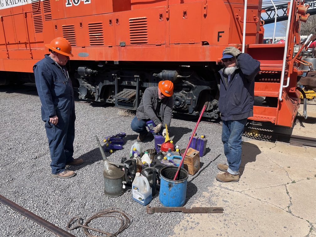 On Saturday, April 6, volunteers Dwight Maxey, Colin Mellin, Kendall Crouch, Bruce Davis, Chris Pollard and Paul Brown braved high winds strong enough to blow your hard hat clean off your head and down the street about a block!! Luckily, our planned work was mostly indoors, but we were not completely spared. Our first work involved cleaning the back area of our shop where we had a slight oil spill from storing used oil in skimpy plastic containers. In addition to cleaning the oil, we cleaned up a lot more junk, dirt and dust from the area, and stuffed the already 3/4 full 3 yd dumpster we have on site. Yes, a little Spring cleaning happened!