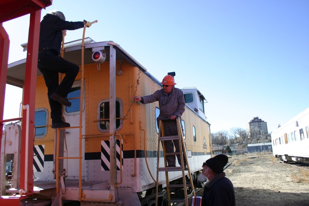 On Saturday, November 30, volunteers Dwight Maxey, Colin Mellin, Bruce Davis, Ben Pollard, Polly Cotton and Paul Brown spent the day installing Christmas lights on the locomotive and cabooses in preparation for the events in December, and continuing work on the interior rehab of the C&W caboose. There will be some additional decorating done next week and we will also be working to get the C&W caboose ready for service for the December events, though not completely finished.