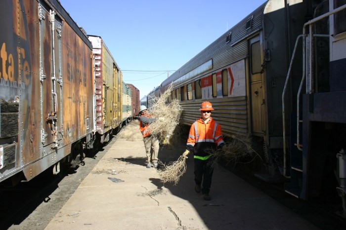 On Saturday, March 22, volunteers Dwight Maxey, Chris Pollard, Bruce Davis, Kendall Crouch, Colin Mellin, Dannis Hudson, Nick Walker and Paul Brown cleared out weeds from the collection area and swept the platforms to get the Museum ready for our Spring and Summer events. This is always considered important work to keep the Museum neat looking, and to reduce the fire hazard.
