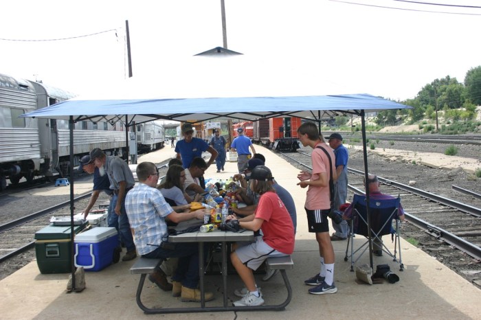 On Saturday, August 9, the Pueblo Railway Museum hosted it’s first Railfan Event. This was an event catering to a group of hobbyists who specifically like to photograph trains in unique locations/situations. Volunteers Dwight, Colin, Reid, Kendall, Chris, Ben, Bryan, Dannis, Abel, Henry, Ron, Jackie, John, Petar, Shirley, Gary, and Paul pulled out all of the stops to give our Lucky 13 railfan guests a day to remember! All three of our GP7 engines were fired up, running two different trains which we were able to pose at different locations and with some BNSF or UP trains included in the pictures. We hope that we were able to let the railfans get the pictures they wanted, and experience rail equipment in an up close and personal way. We were also able to have an air horn demonstration with the sounding of several different models that we normally don’t get to hear.