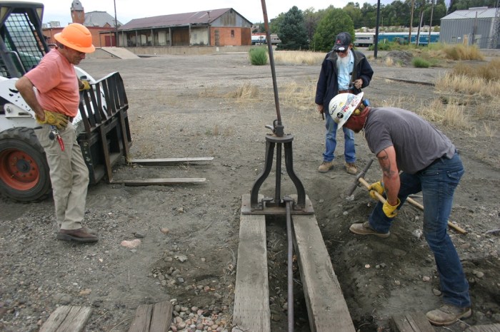 The crew took a quick lunch break, and then split up to get a couple more projects done. Dannis, Henry and Nick worked to set up a small display in the shop. Bruce, Scott and Paul finished installing the switch stand, while Dwight and Colin were checking out our generator and other equipment that needed some attention. Paul, Dannis, Henry and Nick finished up the day cleaning up some items stored in the shop yard.