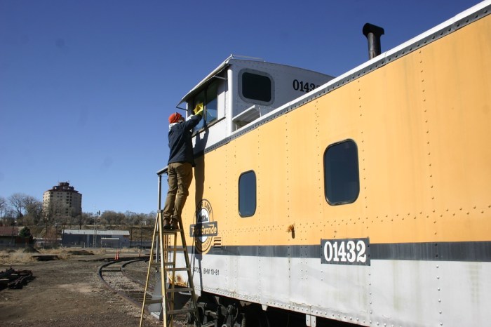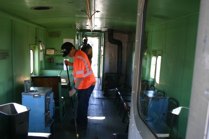 On Saturday, March 7, volunteers Dwight, Bruce, Chris, Kendall, Dannis, Nick, Ben, Reid, and Paul worked at the D Street Shop to get our caboose equipment cleaned and ready for use for our first event of 2026 on March 8. We also needed to start Engine 103 to switch equipment for the proper consist for the event. While starting the locomotive, we ran into some trouble with a relay causing the fuel pump to stop. After solving that issue, we had a good start and finished the work. After the equipment switching was completed, Engine 103 was taken out to the main running track to check the track and locations for the event on Sunday.