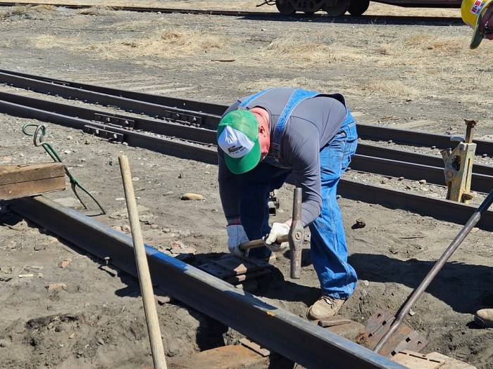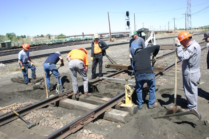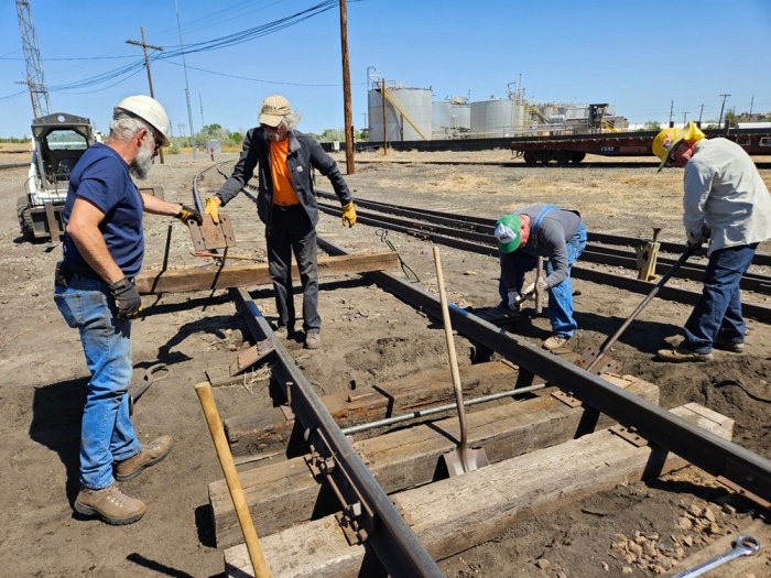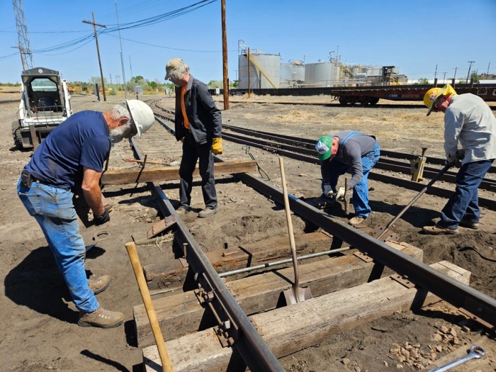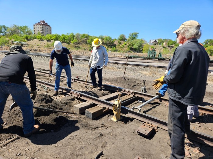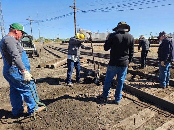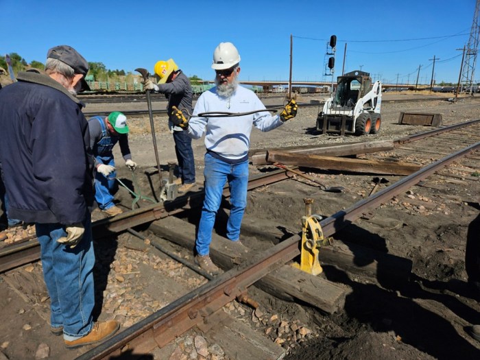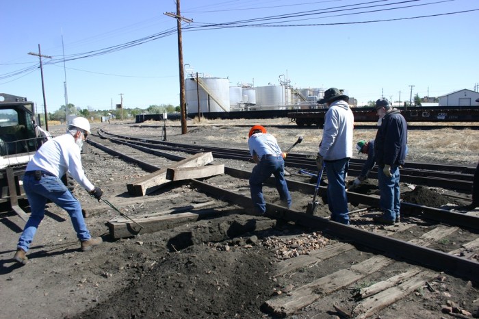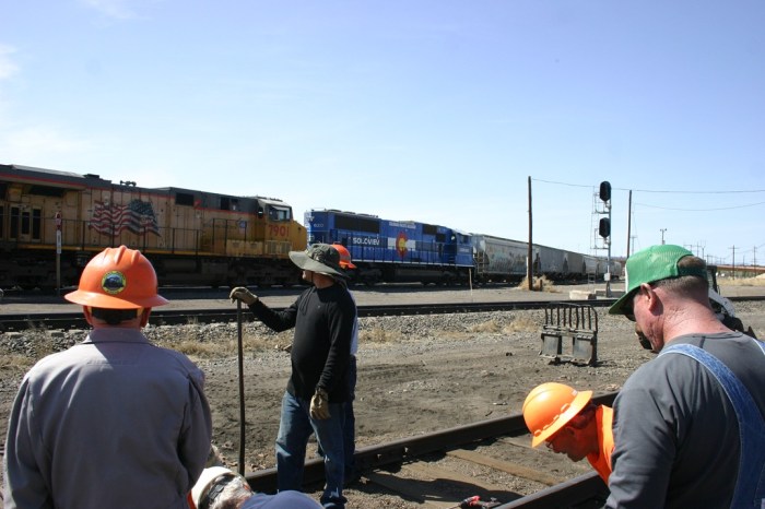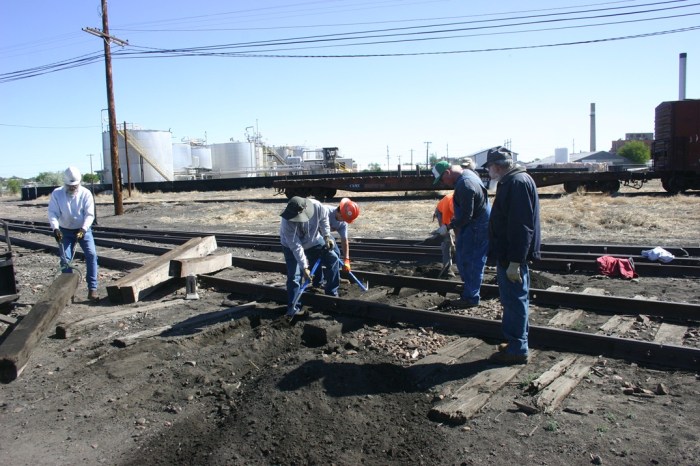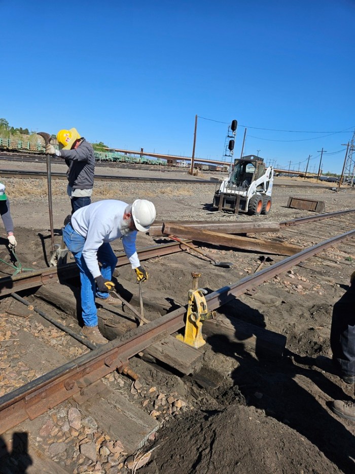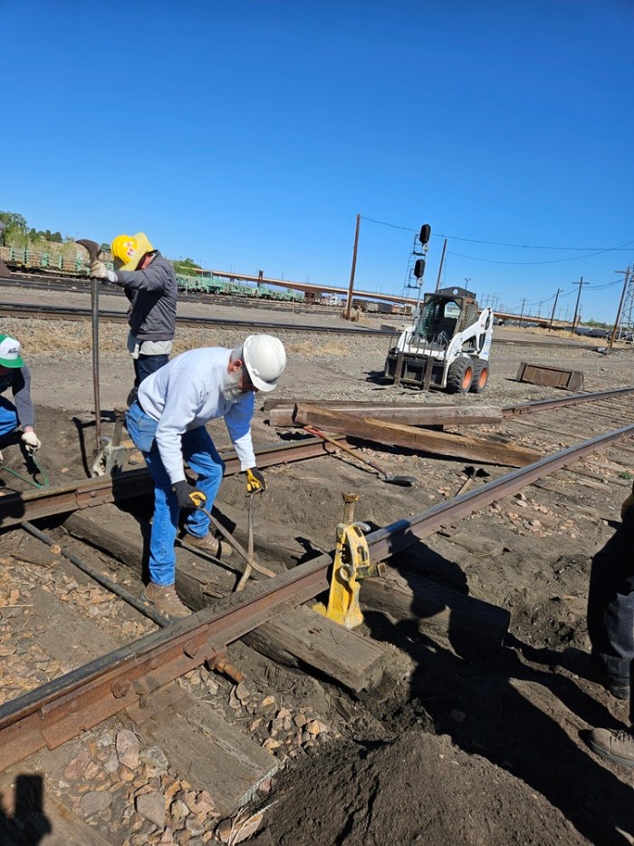 After the lunch break, the gang threw some ballast in place, and worked on getting tie plates secured on some of the remaining ties. We then surveyed the track to plan for next week’s work day, when we are planning to replace 4 more ties. During the day, we were able to see a few trains roll by on the BNSF main, and even caught a couple pieces of track repair equipment that the gang would have loved to have borrowed for the day! You never know what you might see while working hard at the Pueblo Railway Museum!