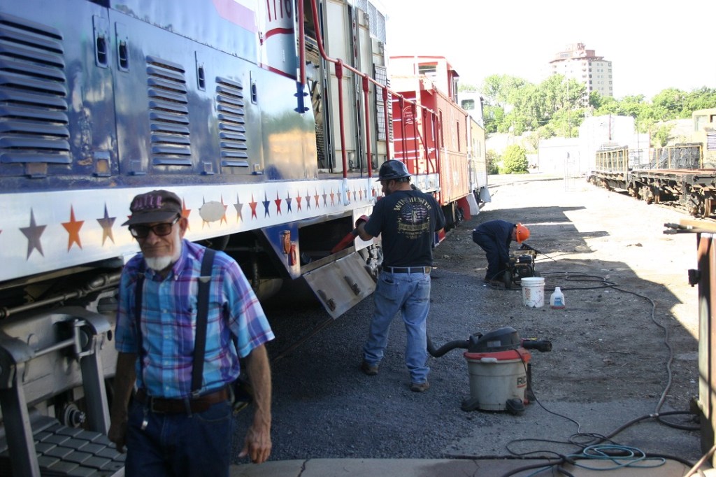 I have included a few pictures of the day’s activities. As you can see, we do a bit of railfanning while inspecting track.
