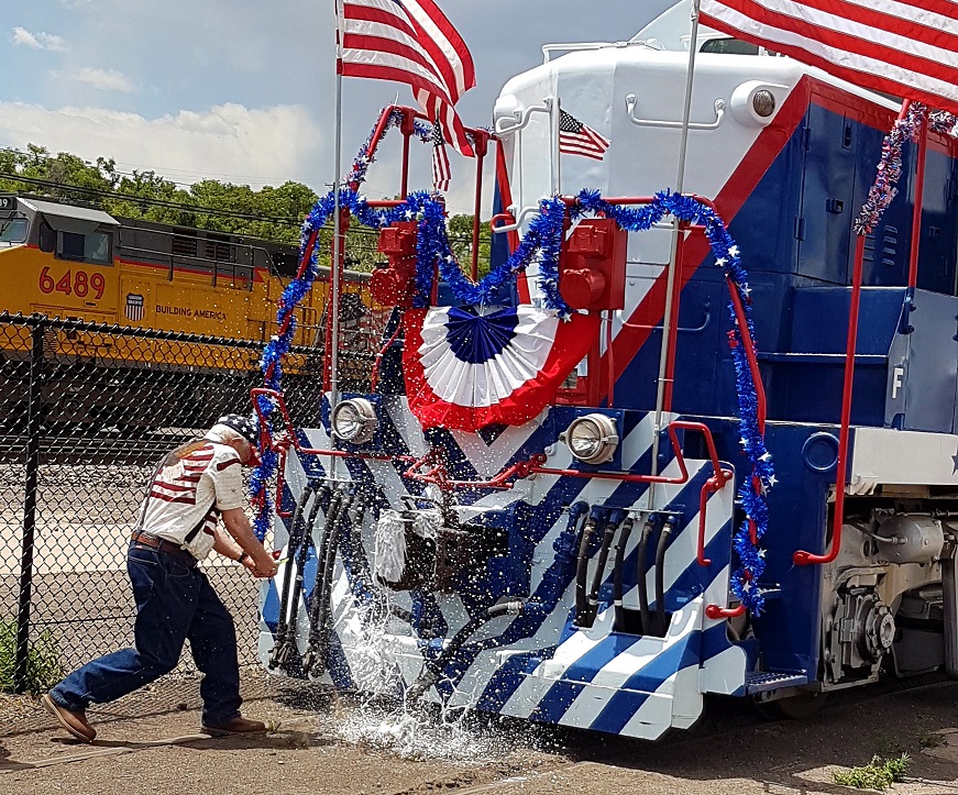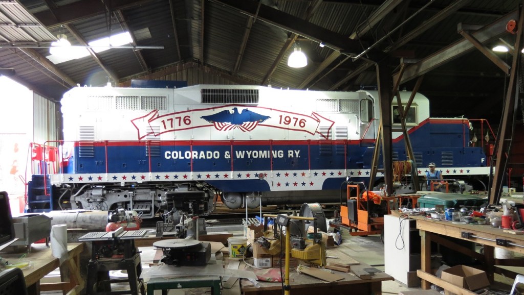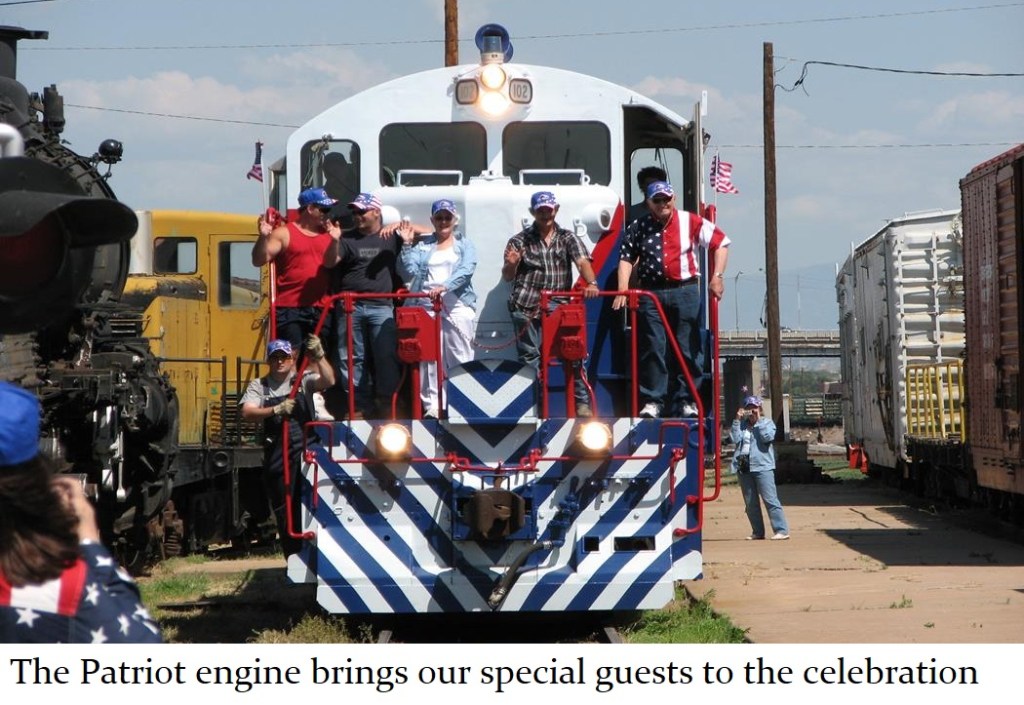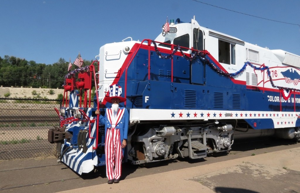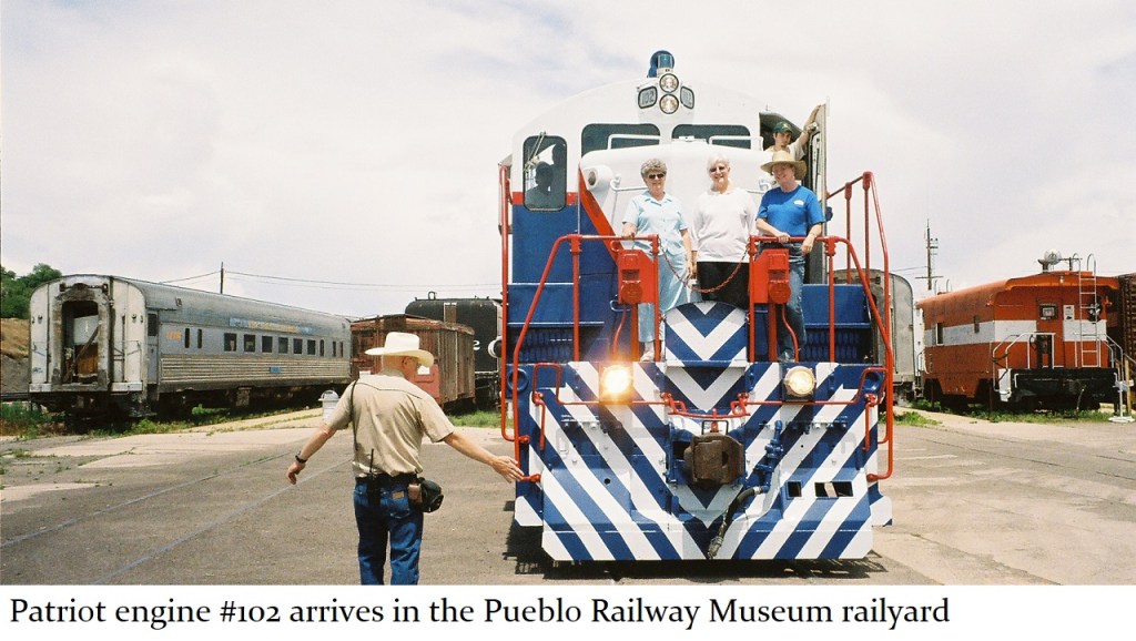 These days, The Patriot spends most of her time inside the D Street Shop, where the engine – and Jill Moring’s magnificent paint job – are protected from the elements. #102 is brought out only for special occasions such as the July 4th train ride event at the Museum. In the past, The Patriot has also been featured at the Colorado Rail Fair event at the Pueblo Union Depot. The PRF hopes to see the Rail Fair come back in the summer of 2021 after being cancelled in 2020.