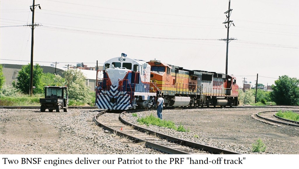 Two months later, arrangements were made to put The Patriot on a Burlington, Northern and Santa Fe train as a piece of “freight”, and deliver it to the PRF on June 3, 2007.