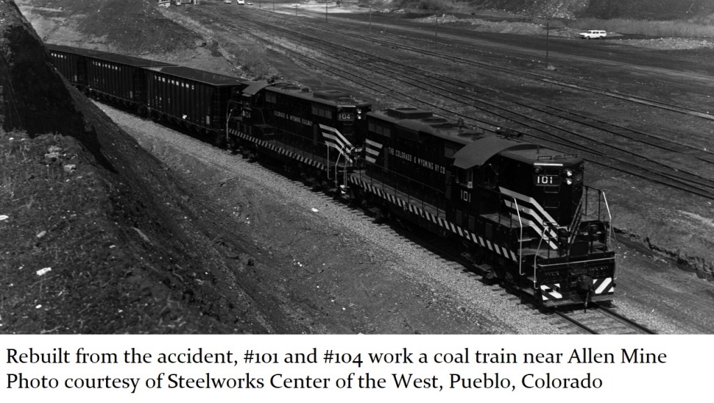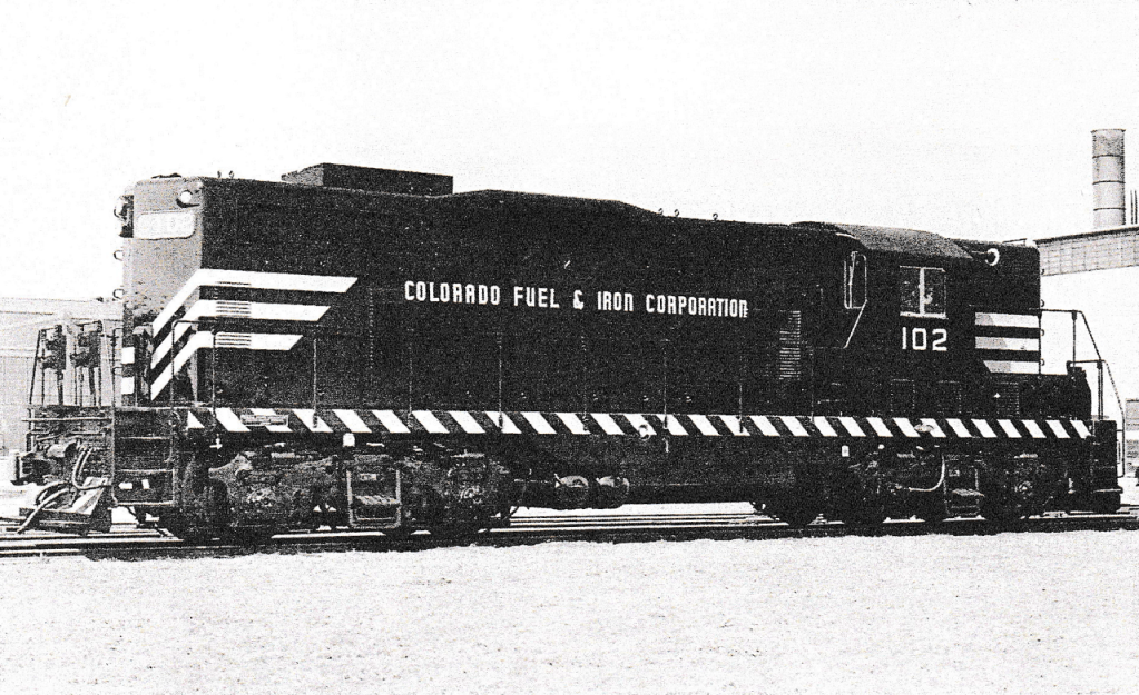 The Patriot engine began its life as simply “CF&I engine #102”, painted the same black color as any other engine owned by CF&I. Engine #102, along with engine #101, were purchased as a pair in March 1951 by Colorado Fuel & Iron Corporation (CF&I) for $282,950. These engines would be put to work on The Colorado & Wyoming (C&W) Railroad, formed in 1899 as a subsidiary of CF&I. For the first half-century of its existence, the C&W railroad was steam-powered. That all began to change in 1951, and this engine, #102, was the first engine to affect that change. Engines #101 and #102 were put to work in May 1951 at the C&W railroad’s “Southern Division”, working the coal mines of the Sangre de Cristo Mountains west of Trinidad, Colorado.